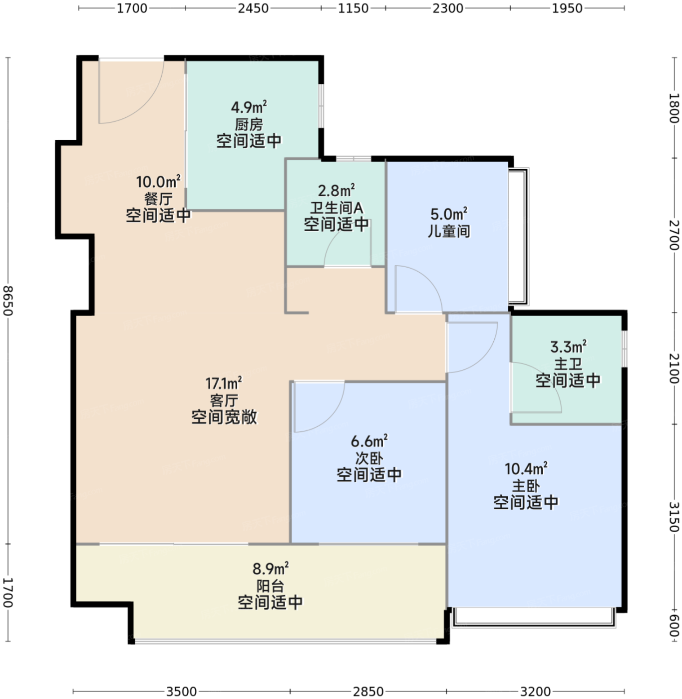 (毛坯净宽)5.85超长客厅阳台,兼具实用及美观