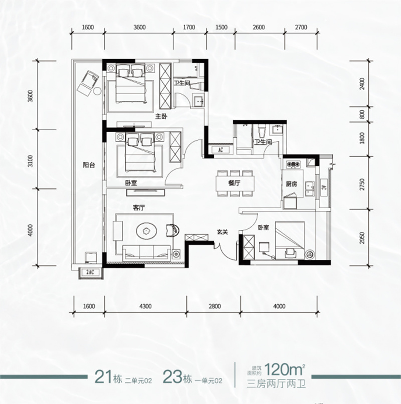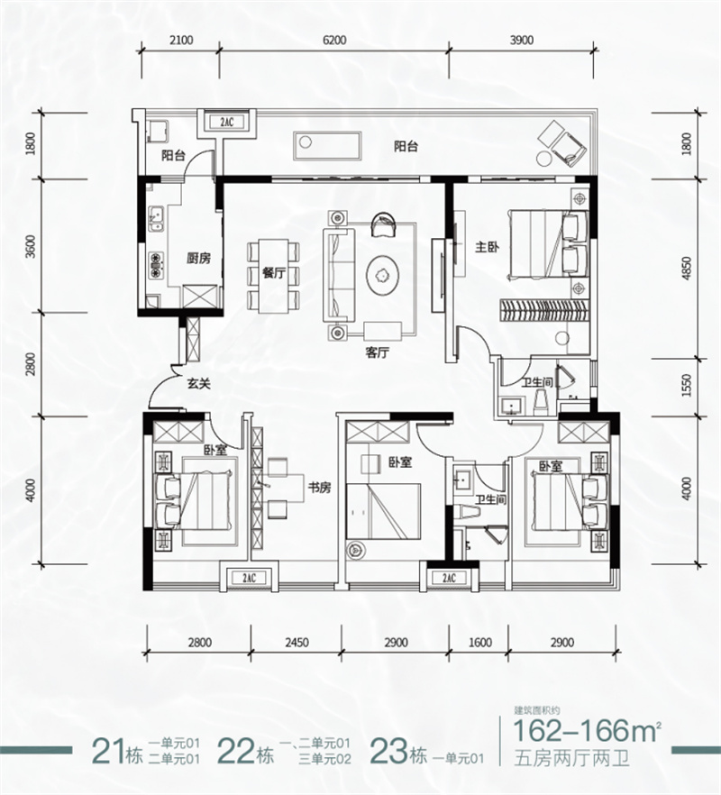 建面约120-160㎡3-5房2厅2卫