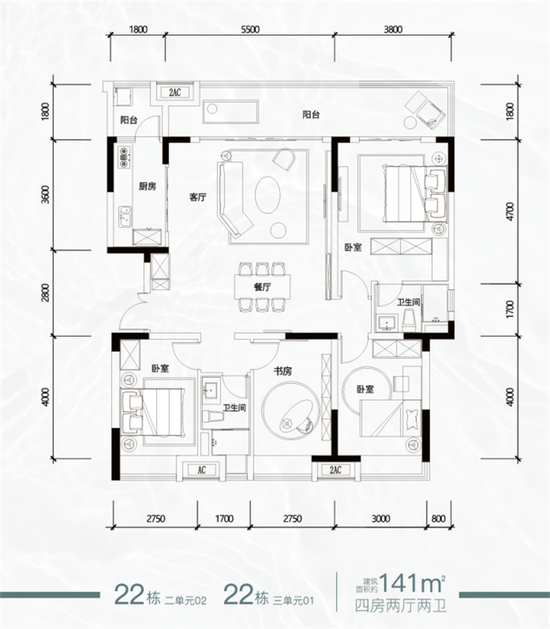建面约142-150㎡4房2厅4/5卫