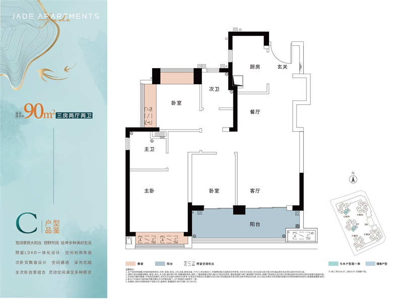 建面约69-90㎡两房\三房住宅
