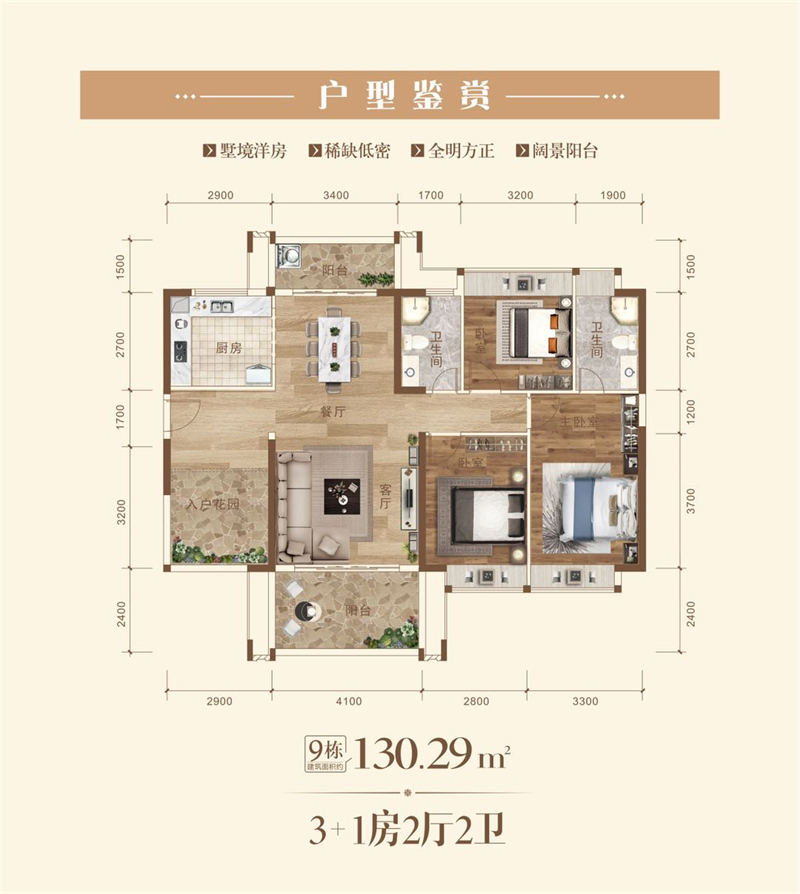 产品:建面约99-131㎡3-4房精品筑造