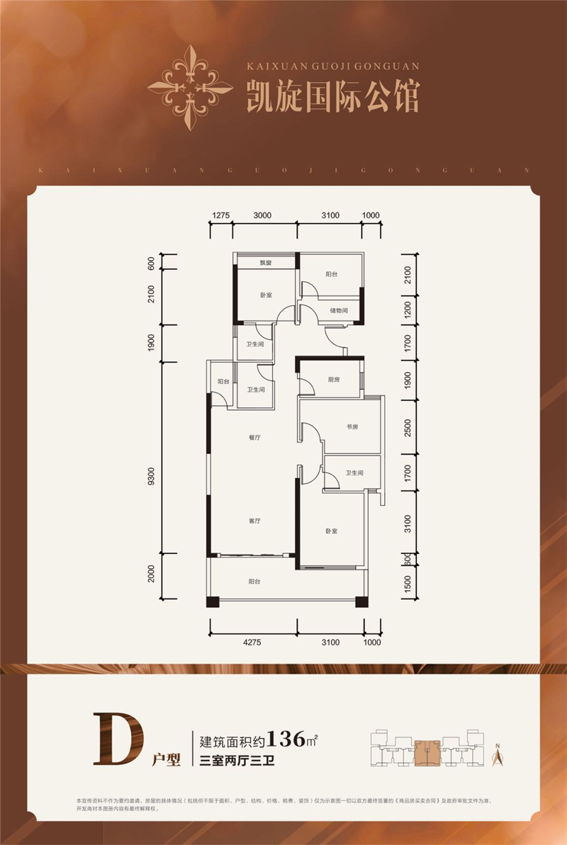 • 德丰凯旋国际公馆 1 3 6 平米-4房2厅2卫-136.00㎡