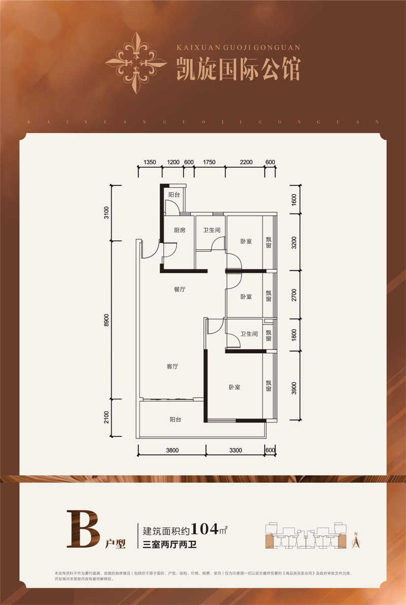 • 德丰凯旋国际公馆 1 0 4 平米-3房2厅2卫-104.00㎡