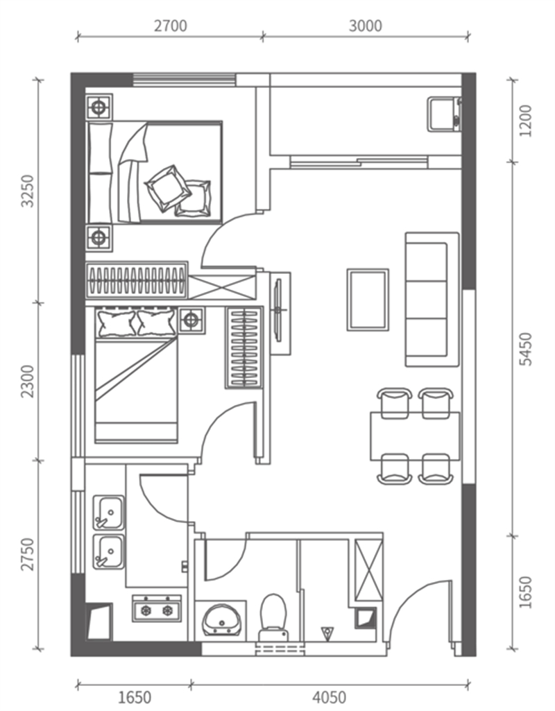 2)建面约65㎡2房2厅1卫