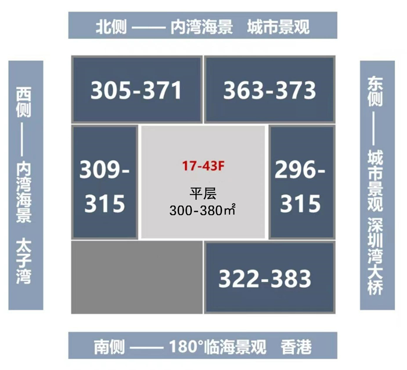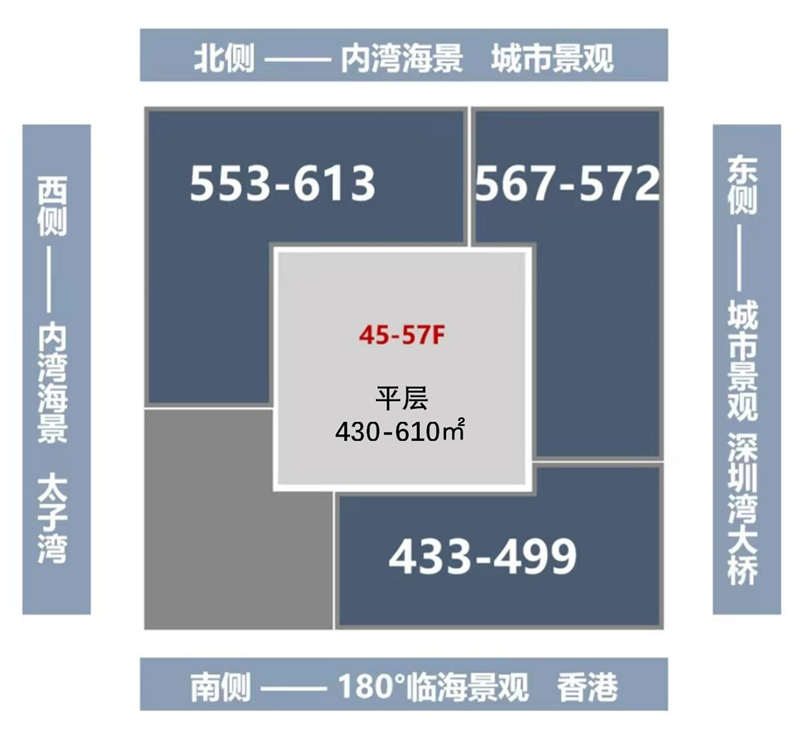 • 东侧为半岛城邦和南海玫瑰园三期,西侧与招商双玺隔海相望,北侧为深圳湾内湾海域,南侧为一线深圳湾永久无遮挡海景