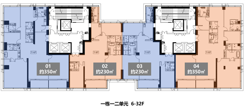 二期推售产品位于17—57F,其中43F及以下为一层六户,45F及以上为一层四户——