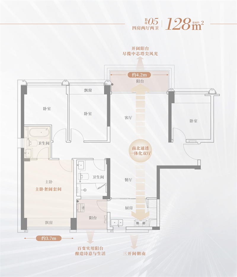 • 双卫浴、双阳台设计,独立分区从容优雅