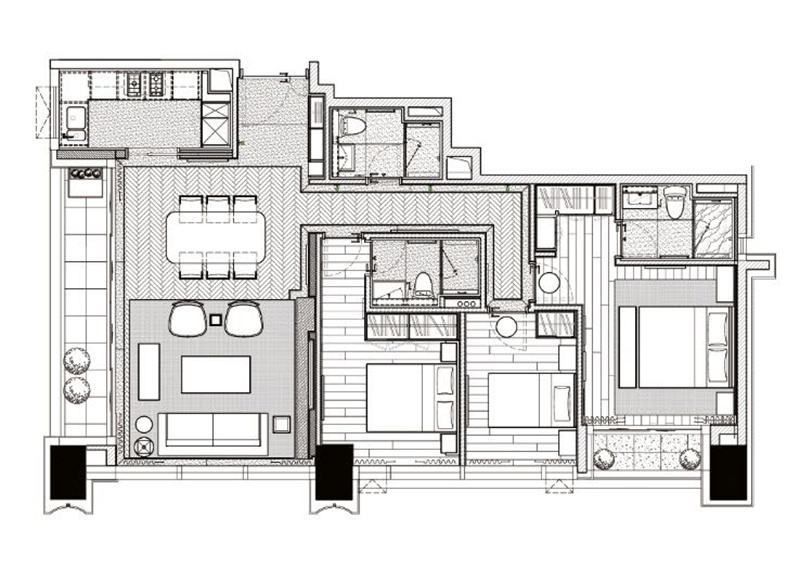 建筑面积约188㎡3房2厅3卫(复古Kelly Hoppen 风格)
