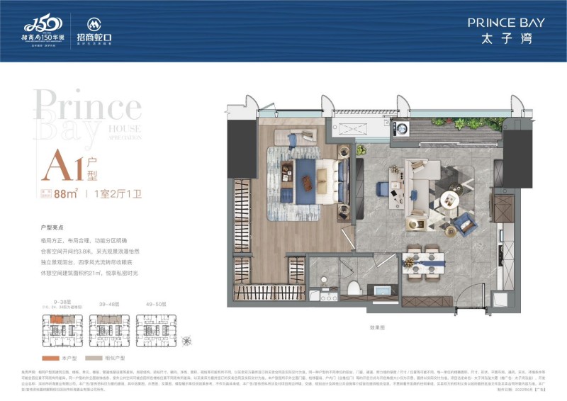 鼎级配套:约170万m²未来之城(约61万m²商务集群,含约380m超高塔尖商务总部+约46万m²滨海商业,含K11亚洲旗舰商业体、D-park等+约39万m²国际滨海社区+6万m²文化艺术中心+约8万m²五星级酒店+约4.5万m²太子湾国际学校、国际医院),一湾三坊城中城,滨海生活时代领地。
