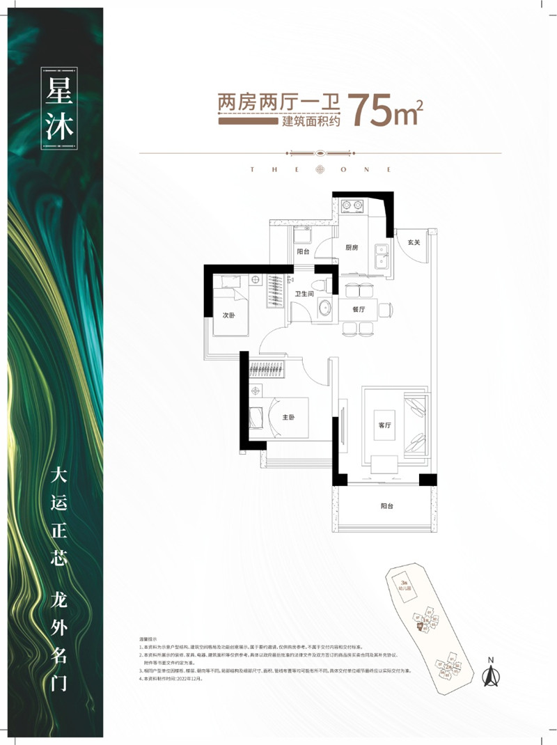 建面约74.5-77.5㎡ 2室2厅1卫