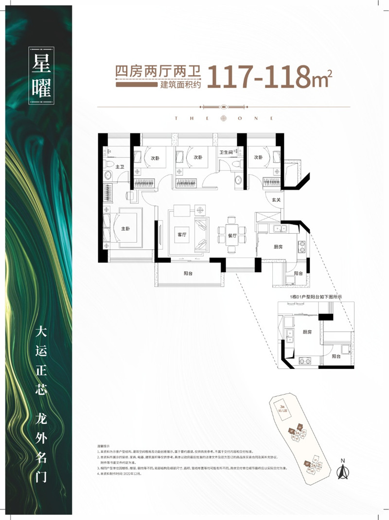 建面约117.2-117.8㎡ 4室2厅2卫
