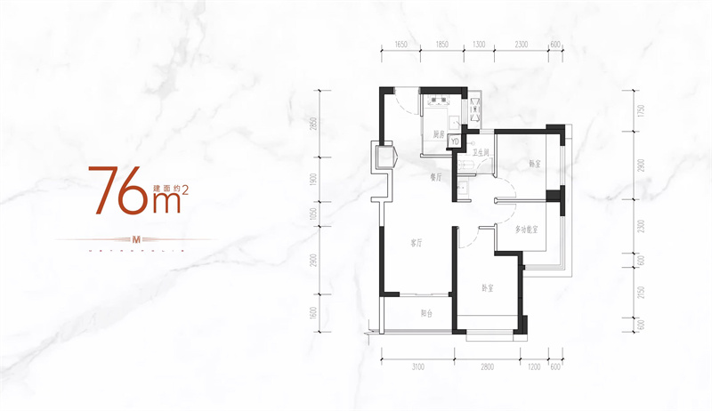 建筑面积 76.00m² 原总价 418万