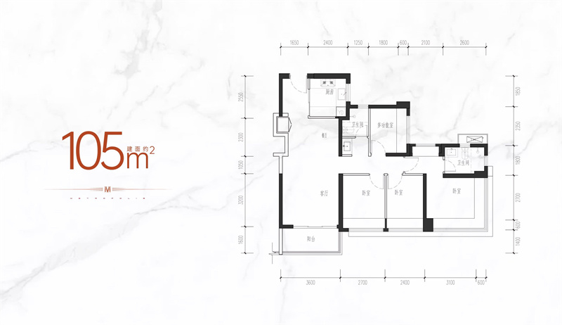 • 鸿荣源珈誉府 1 0 5 ㎡-4房2厅2卫-105.00㎡