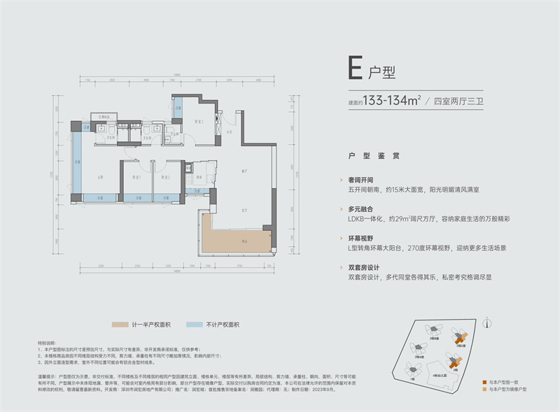▲润宏城建面约133-134㎡户型图(最终户型图以商品房买卖合同为准)