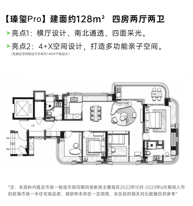 瑧玺pro:128㎡4房,在尺度、功能及空间结构上实现较好平衡