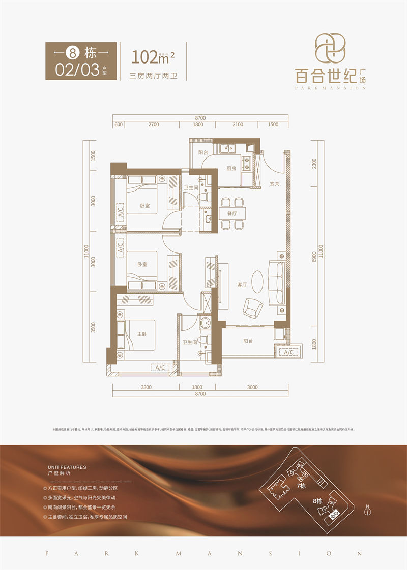 • 百合世纪广场 1 0 2 平米-3房2厅2卫-102.00㎡