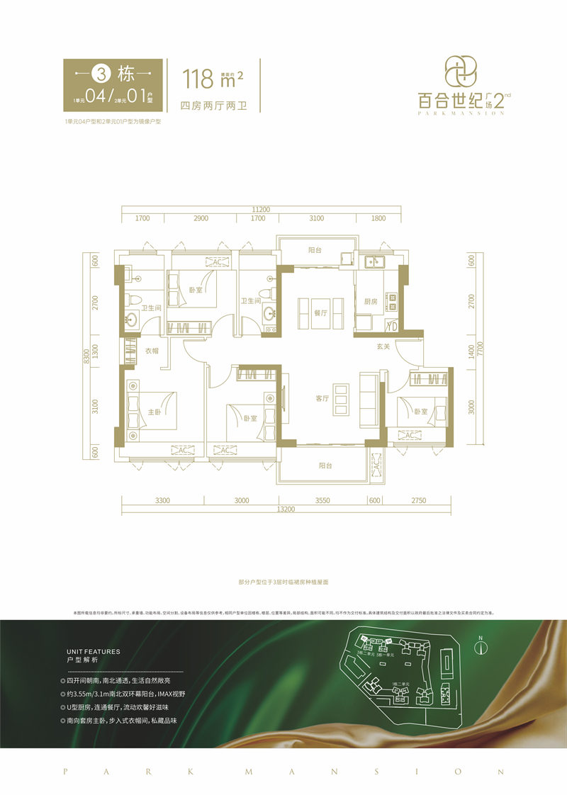 • 百合世纪广场二期 1 1 8 平米-4房2厅2卫-118.00㎡