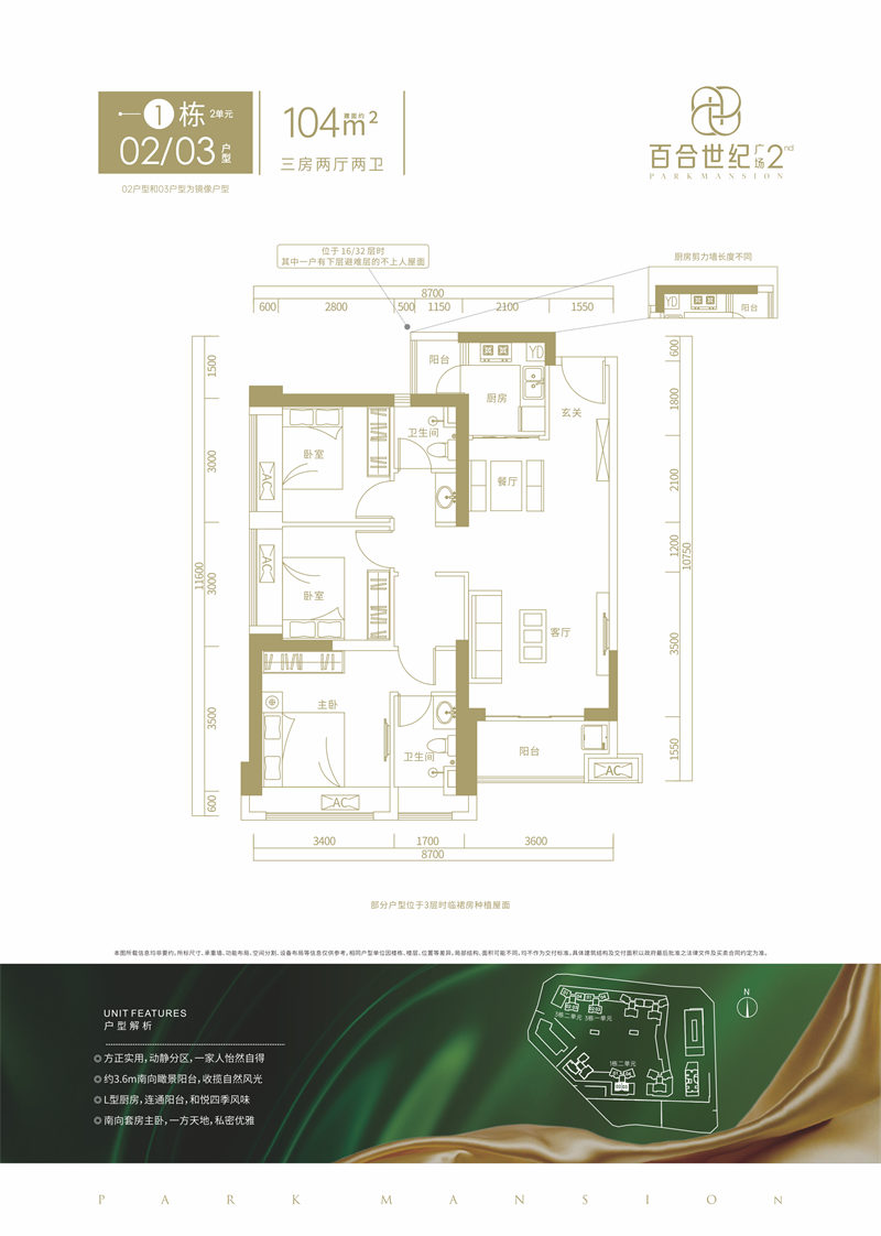 • 百合世纪广场二期 1 0 4 平米-3房2厅2卫-104.00㎡