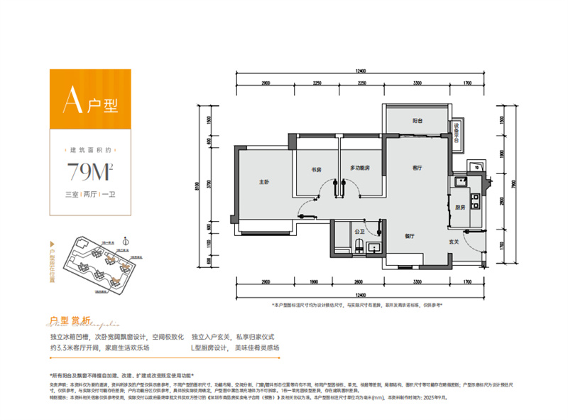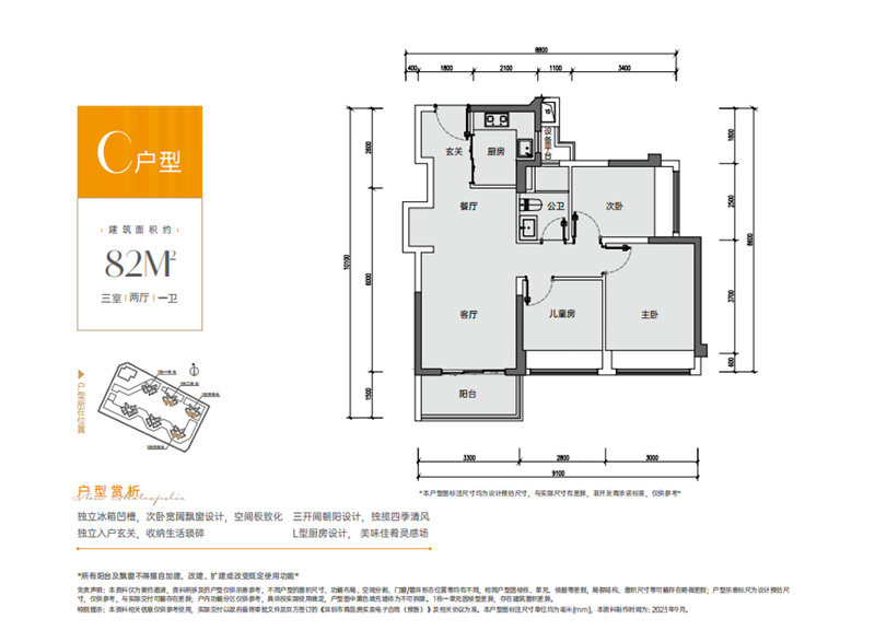独立冰箱凹槽,宽阔飘窗设计,空间极致化