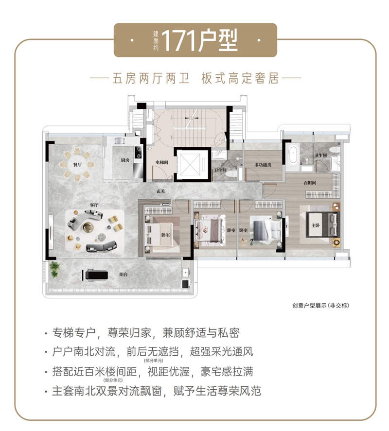 建面约171㎡奢适五房