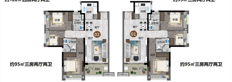 01/02【建面约95㎡三房两厅两卫】