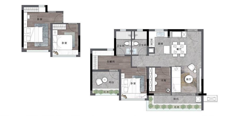 • 奢阔主卧套房,空间功能可灵活百变