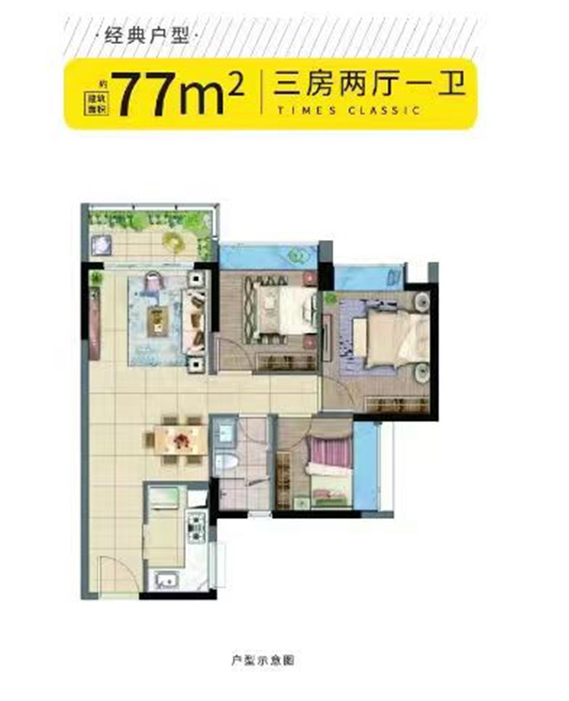 在售产品:建面约 77 | 99 | 106 | 121㎡三至四房(可改)