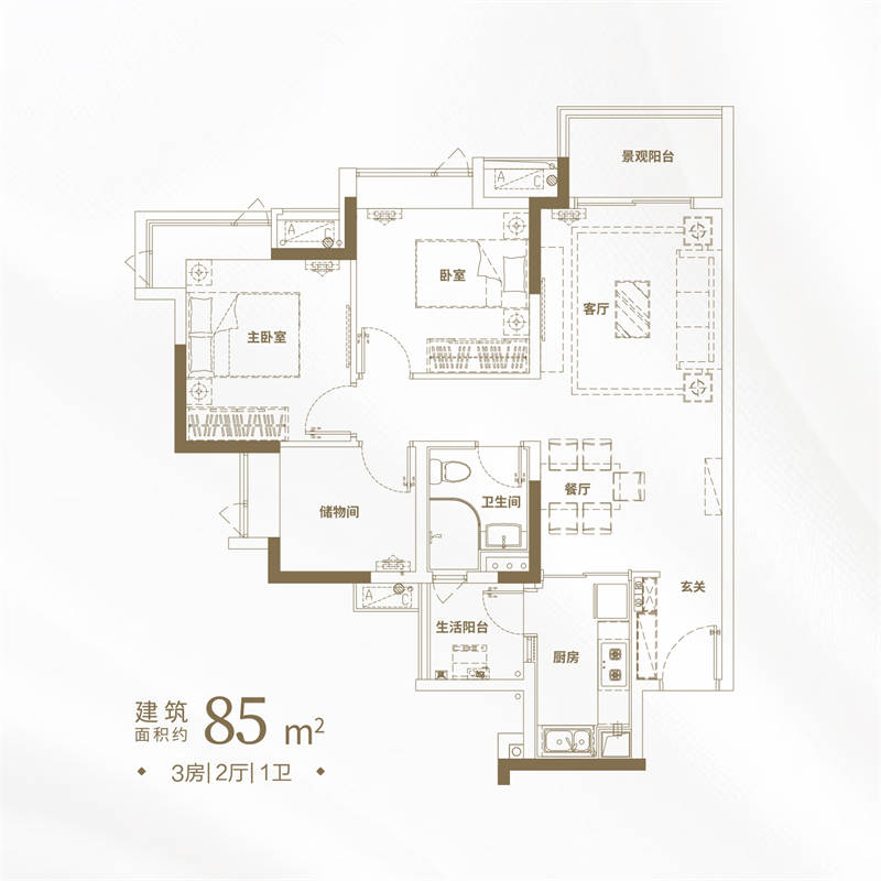 在售产品:85㎡三房、96/108㎡三房、125/134㎡四房
