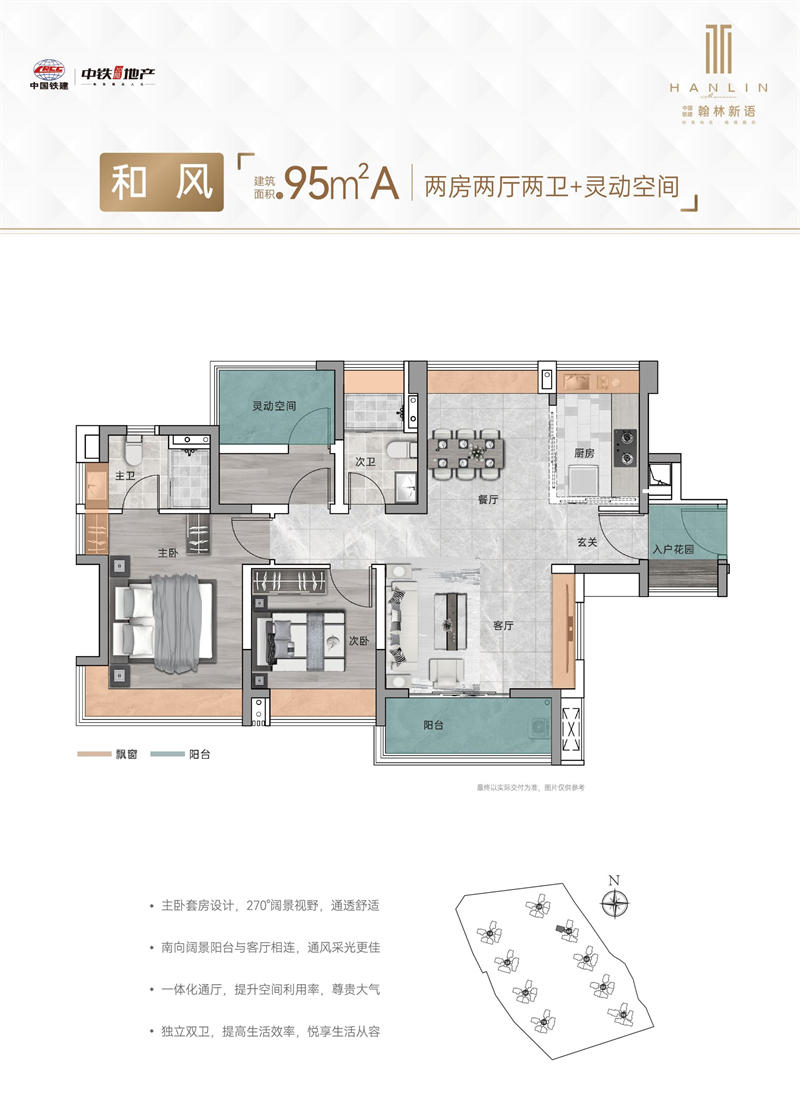 项目采用点式布局,建筑围绕中心景观园林布置, 实现楼间距最大化,户户朝南,确保日照和空气对流,而且楼与楼之间互不干扰,私密性更高,最大化确保每户最佳的通风、采光、景观视野。
