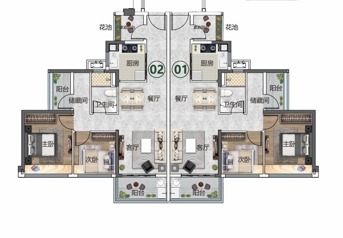 产品:79-125㎡全南向园景四房