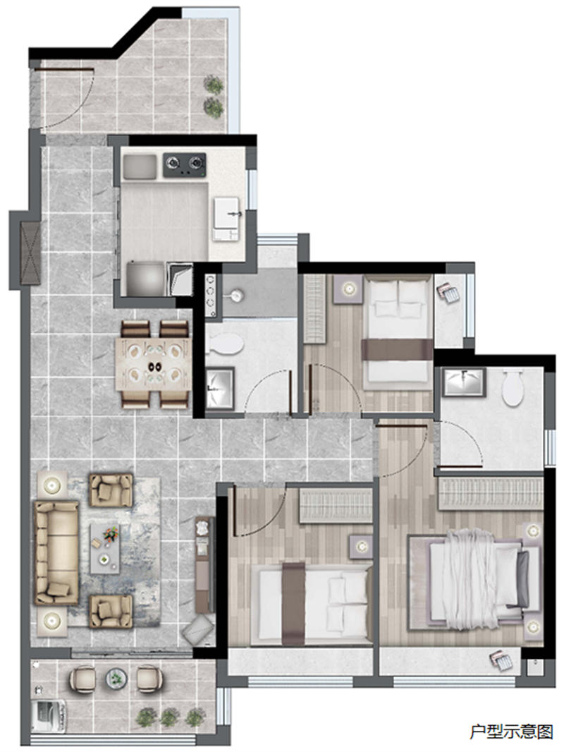 【79㎡3室2厅2卫】多一灵动空间