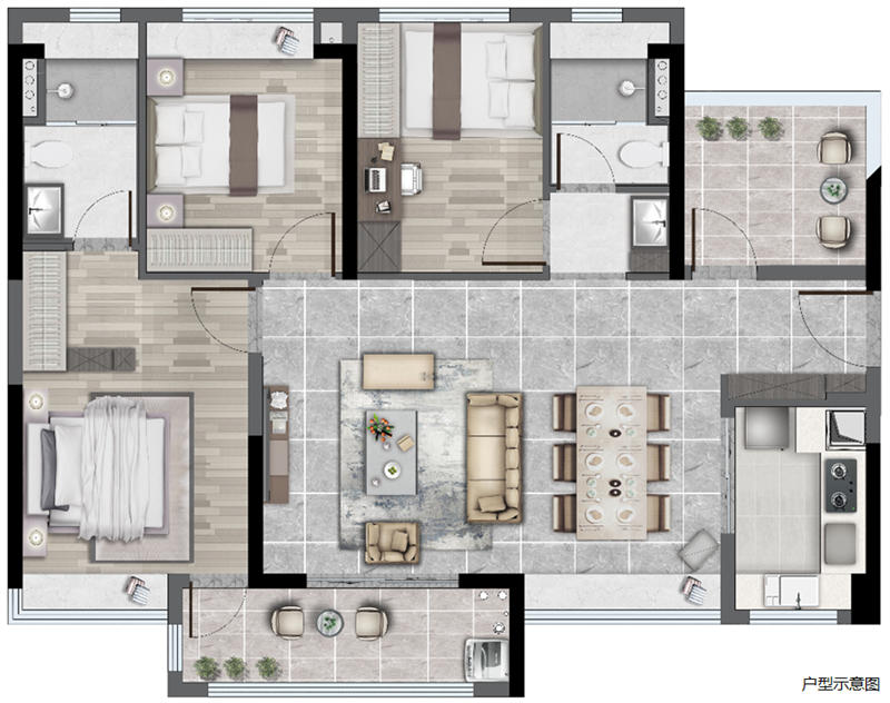 宽大阳台洄游空间 大面积厨房