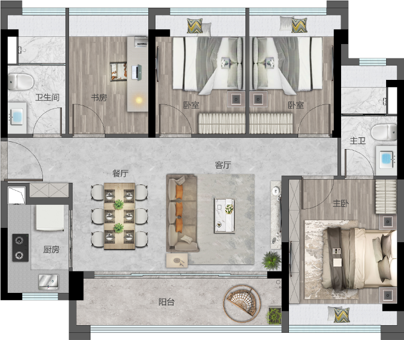 【约101㎡横厅四房】
