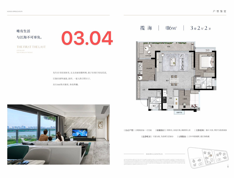 2.五重景观:稀缺江景3公里江面(最宽江面),灵山岛CBD,黄山鲁公园,灯光烟花秀,门口江边公园等