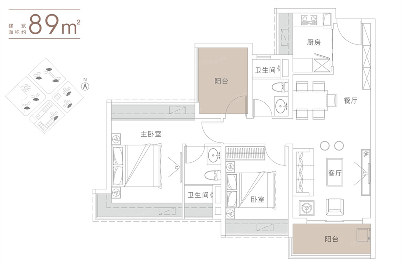 • 越秀珠实天悦海湾 8 9 平米-2房2厅2卫-89.00㎡