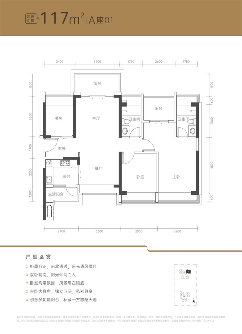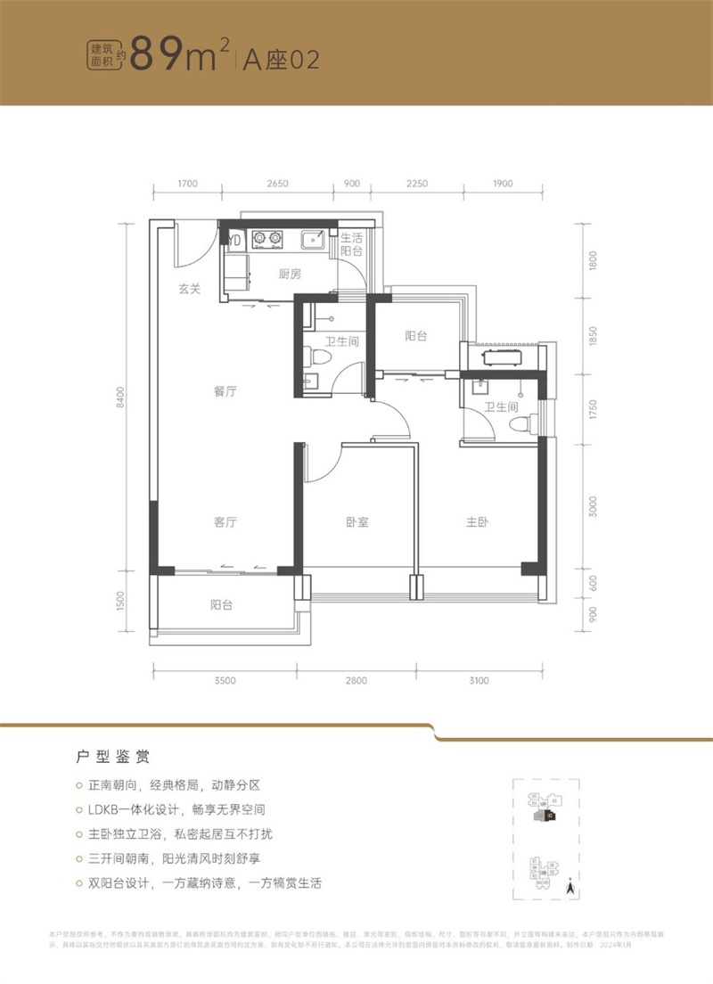 全明户型;客厅带飘窗;三分离卫浴;无过道零空间浪费