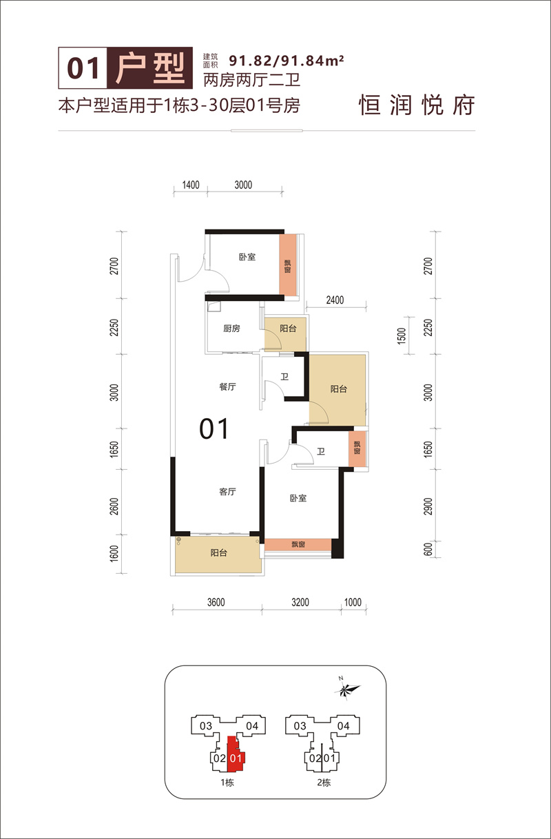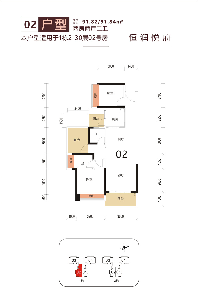 【户型】91㎡ 2+1房2厅2卫 、107/110㎡ 3+1房2厅2卫)