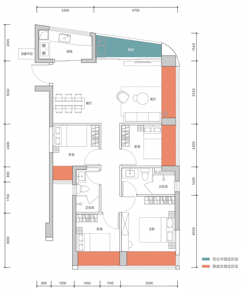 高规格通透户型产品,建面约72-99㎡3-4房,精心打造约2.4m进深阔景阳台,拓展空间更多可能性,为居者提供充足的休闲与活动区域。