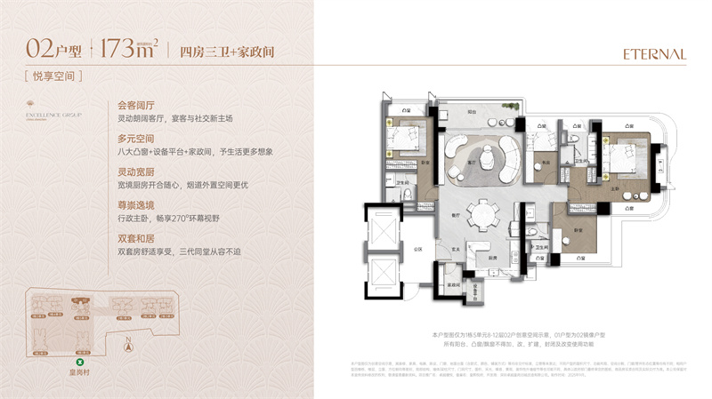 ◎中轴新规 缦系产品建面约92-173㎡三至四房缦系新规产品, 六大设计亮点,定义人居新境。