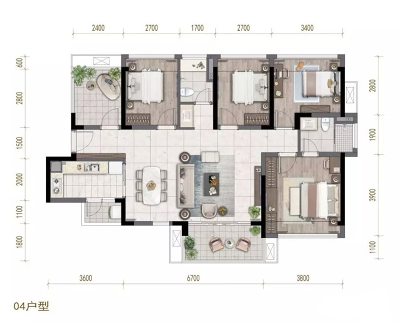 建面约123㎡4+1房2厅2卫(横厅户型)