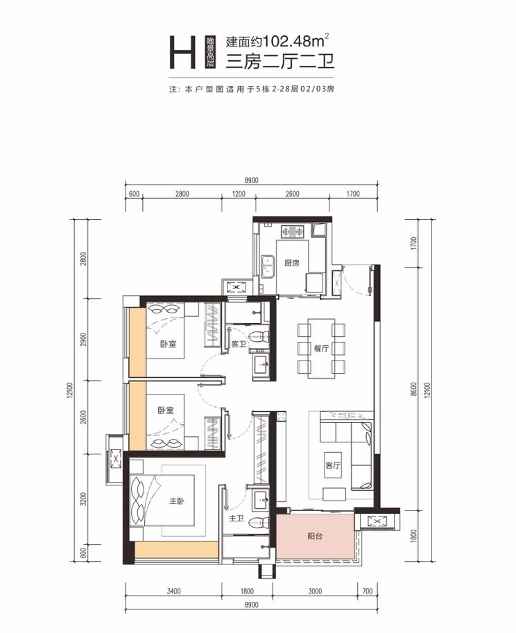 • 灿邦珑廷广场 102平米-3房2厅2卫-102.00㎡