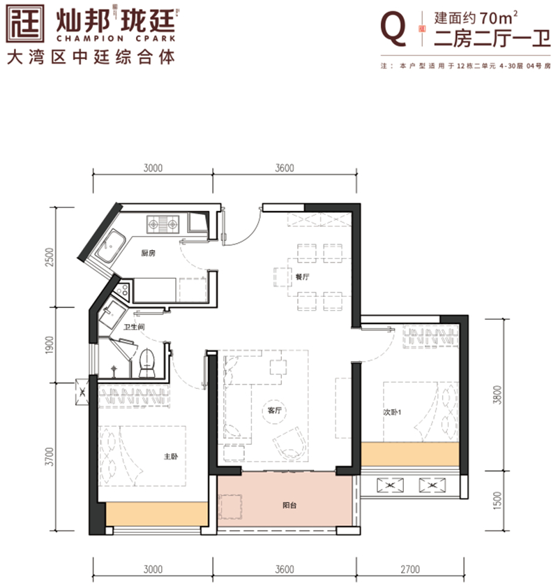 • 灿邦珑廷广场 72平米-2房2厅1卫-72.00㎡