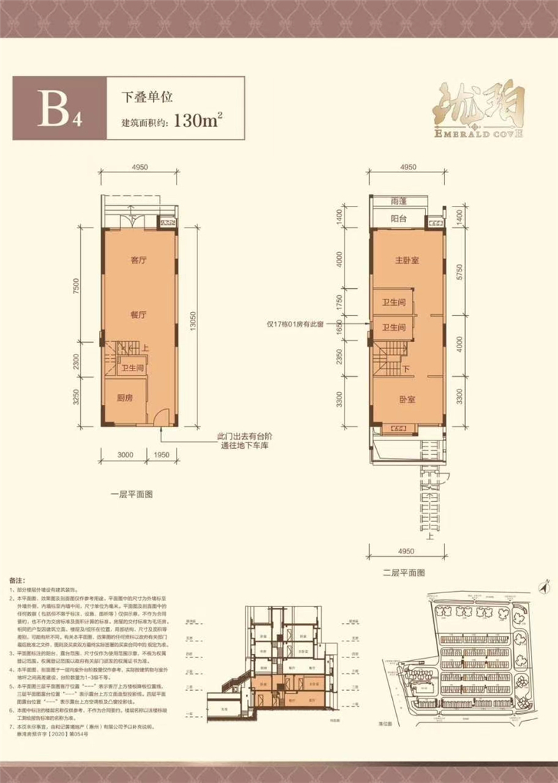 一期:叠加别墅约420套, 3栋高层、商业街, 幼儿园。