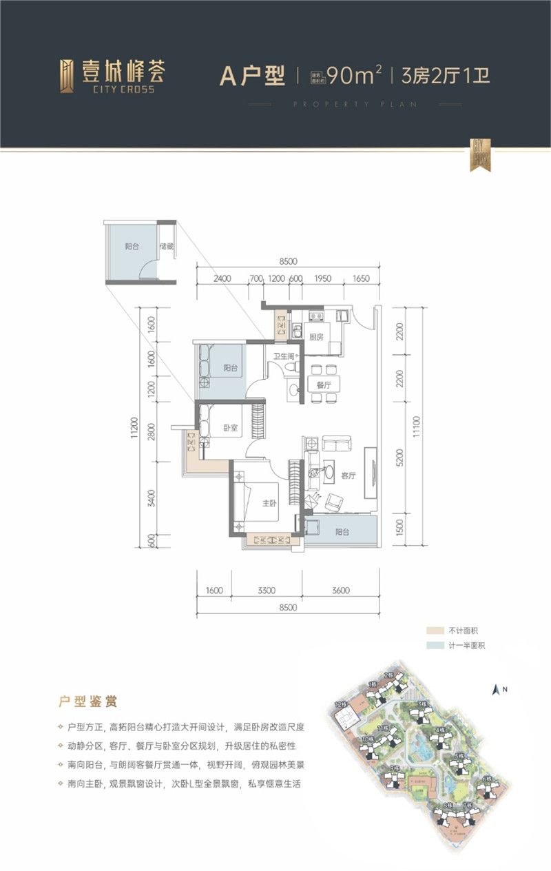 • 壹城峰荟 9 0 ㎡-3房2厅1卫-90.00㎡