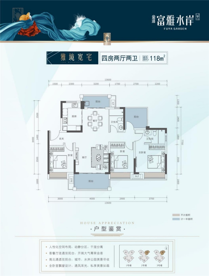 • 富雅水岸 1 1 8 ㎡-4房2厅2卫-118.00㎡