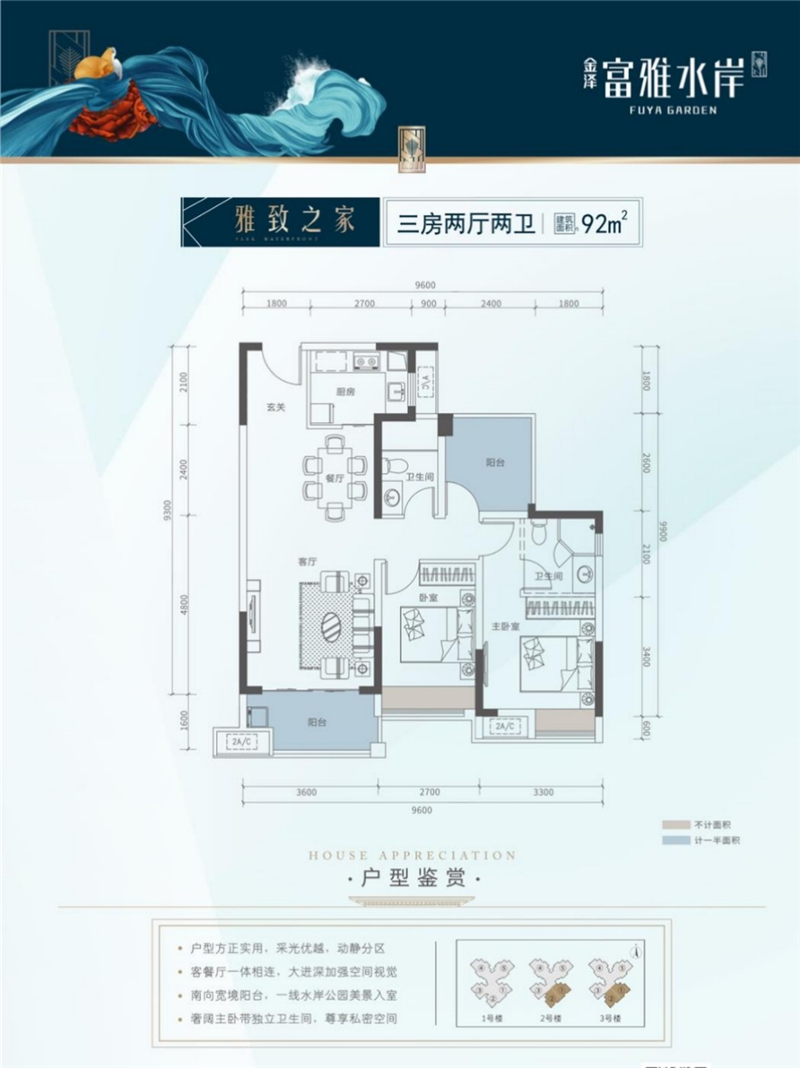 • 富雅水岸 9 2 ㎡-3房2厅2卫-92.00㎡