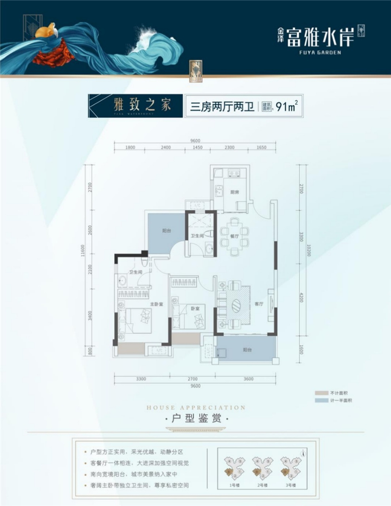 • 富雅水岸 9 1 ㎡-3房2厅2卫-91.00㎡