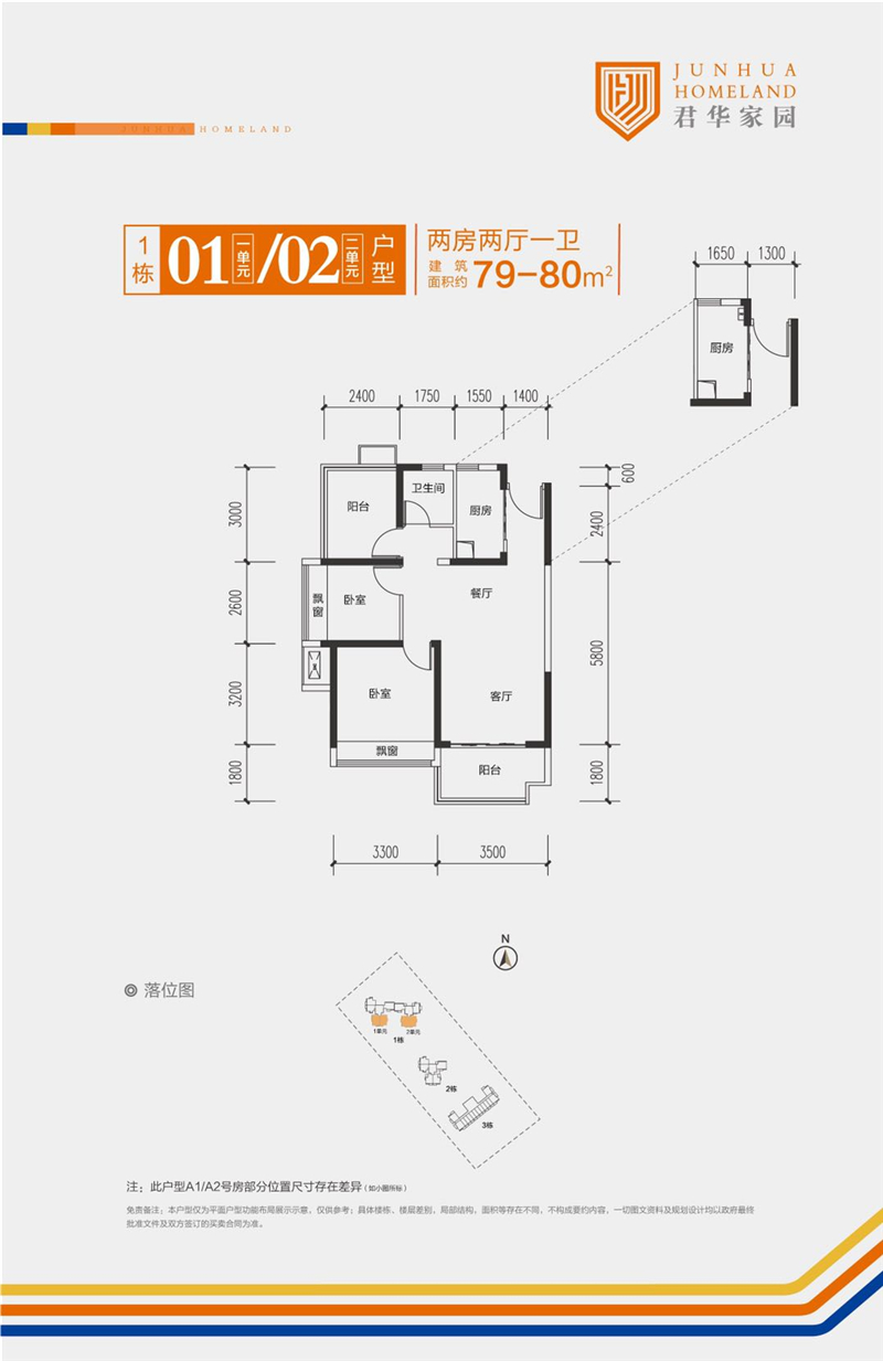 79-80㎡,两房两厅一卫