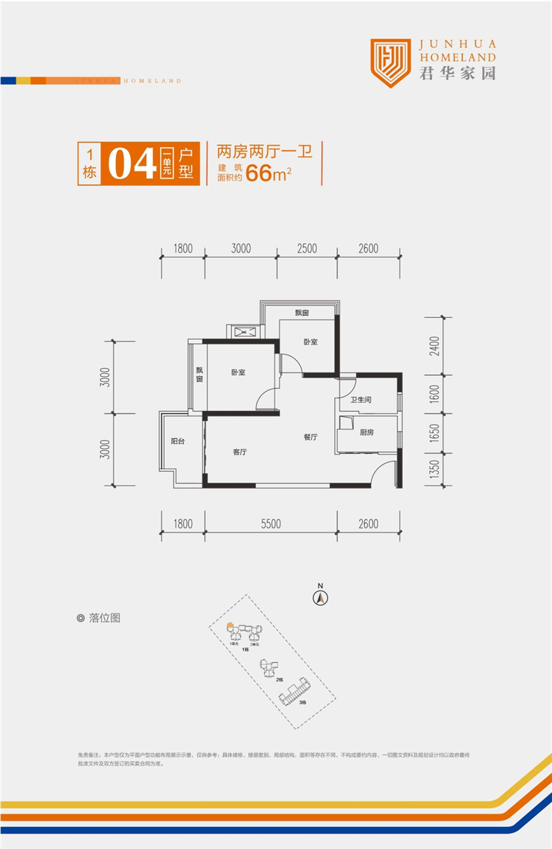 66㎡,两房两厅一卫