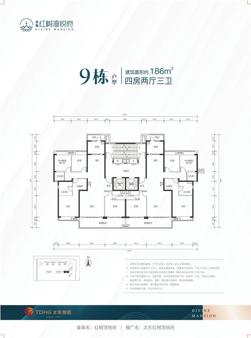 太东红树湾悦府于惠州大亚湾中心区中兴中路红树林公园对面,项目分2期开发,1期占地面积约54163平方,建筑面积约196286平方,容积率2.8,绿化率30%;首期产品涵盖建面约115㎡三房、138/186㎡四房、233㎡五房、288㎡六房。